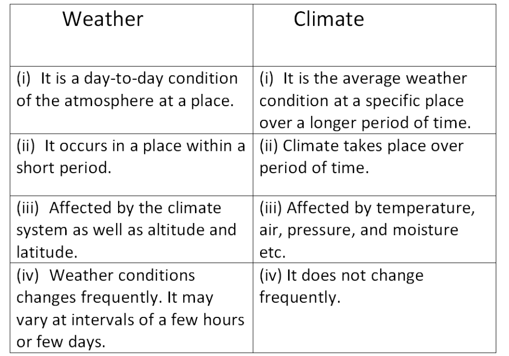 Short Answer Question Distinguish Between Weather And Climate Snapsolve